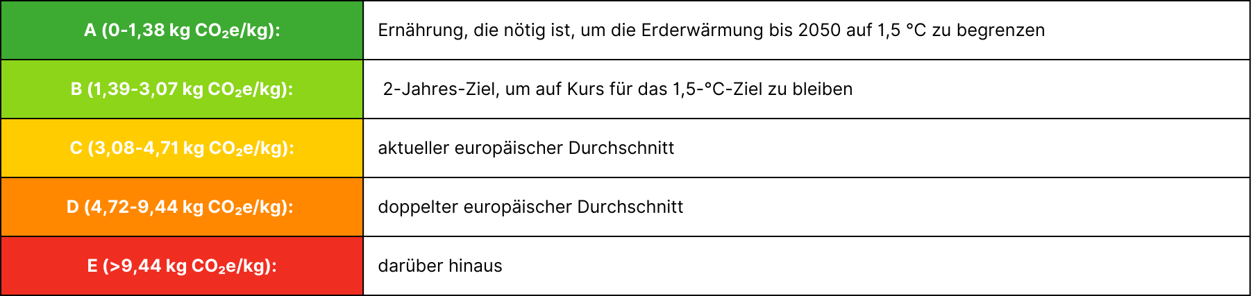 Der inoqo-Klimascore für Verbraucherkommunikation basiert auf den Obergrenzen für Klimaauswirkungen aus dem Bericht „Planetary Health Diet“ (Willet & Rockström, 2019).